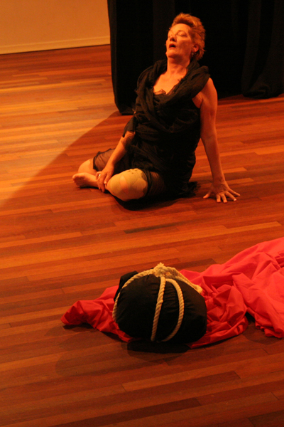 En aquesta ocasió, l’arquitectura del teatre és utilitzada de manera no habitual. La intèrpret es mou sobre l’escenari i fora de l’escenari, apareixent i desapareixent. Així, el teatre es converteix en una finestra que permet veure només fragments de lobra.